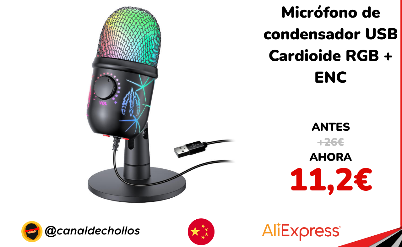 🔹 Micrófono de condensador USB Cardioide RGB + ENC solo 11,2€ ❗️💥 (PVP: +26€)