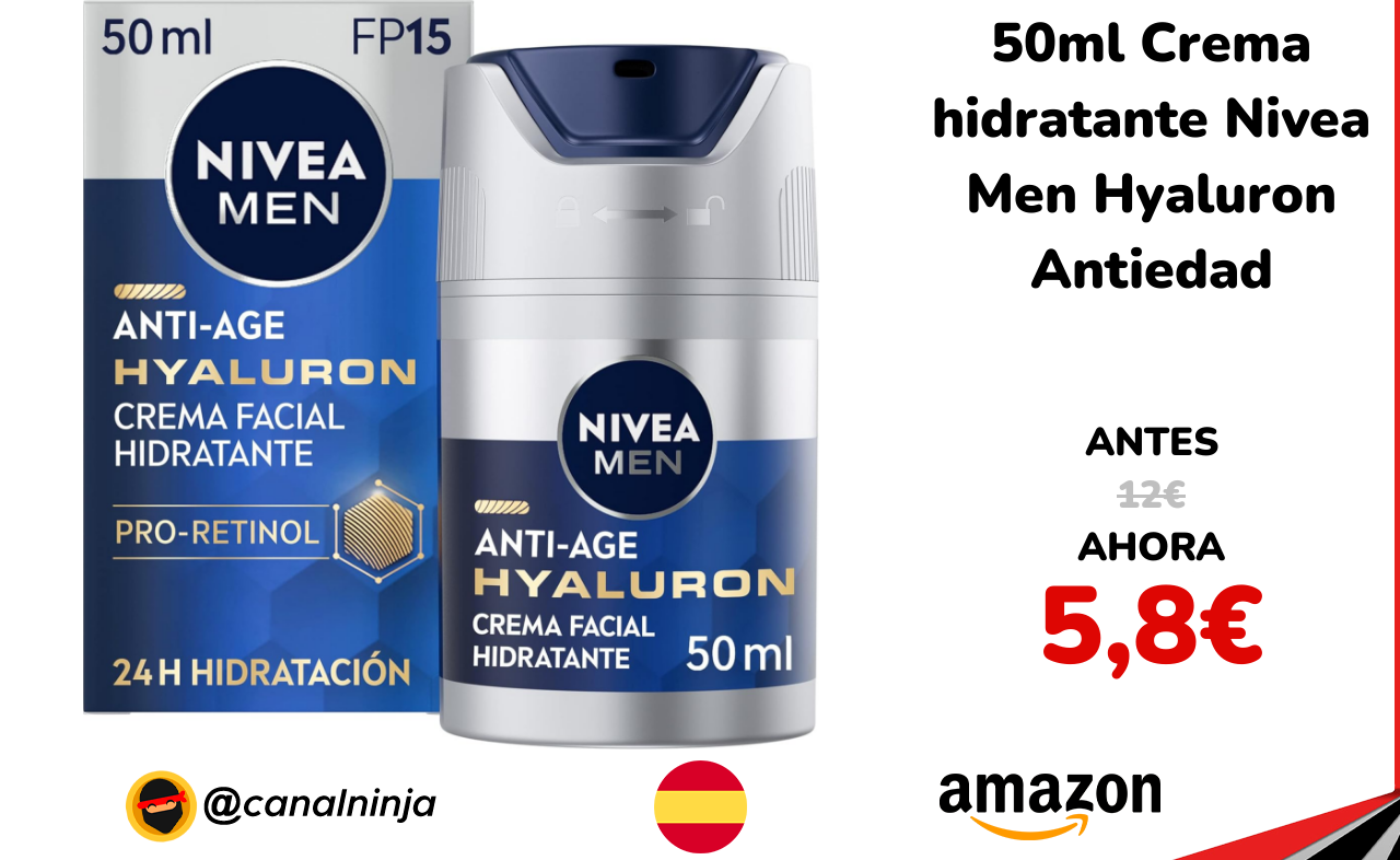 🔹 50ml Crema hidratante Nivea Men Hyaluron Antiedad solo 5,8€ ❗️⚔️️ (PVP: 12€)