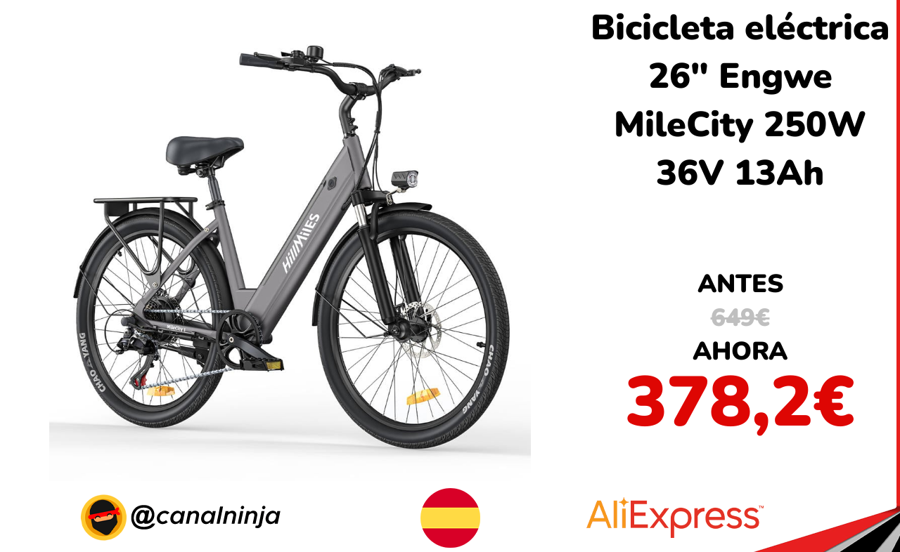 🔹 Bicicleta eléctrica 26" Engwe MileCity 250W 36V 13Ah solo 378,2€ ❗️⚔️️ (PVP: 649€)