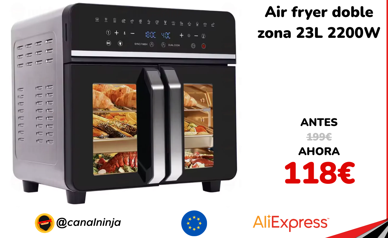 🔹 Air fryer doble zona 23L 2200W solo 118€ ❗️⚔️️ (PVP: 199€)