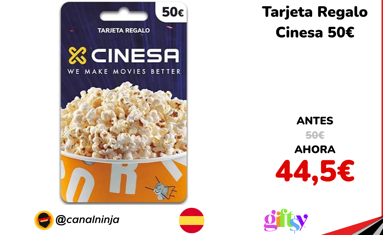 🔹 Tarjeta Regalo Cinesa 50€ solo 44,5€ ❗️⚔️️ (PVP: 50€)