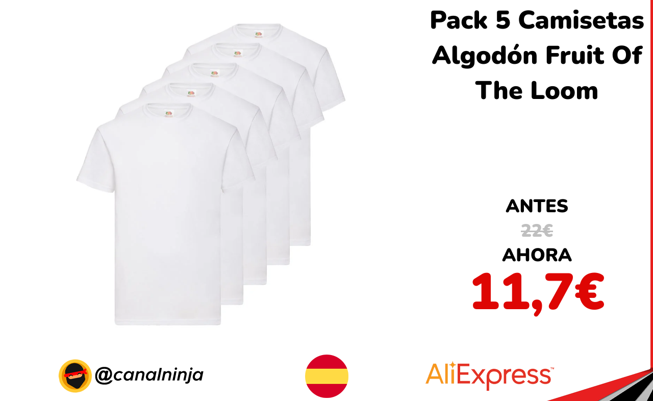 🔹 Pack 5 Camisetas Algodón Fruit Of The Loom solo 11,7€ ❗️⚔️️ (PVP: 22€)