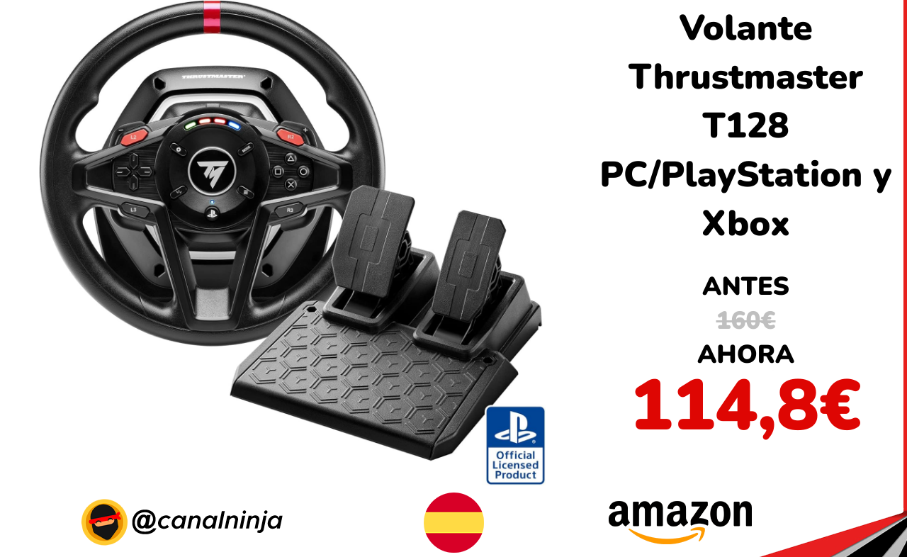 ✨ Buen precio para este para este volante de carreras Thrustmaster T128. Disfruta de una experiencia de conducción realista gracias a su Force Feedback y pedales magnéticos. Compatible con Xbox Series X|S, Xbox One y PC además de PlayStation. Sumérgete en tus juegos favoritos y siente la emoción de la pista con este volante de alta calidad. Domina las curvas y acelera hacia la victoria con el Thrustmaster T128. Vendido y enviado por Amazon.