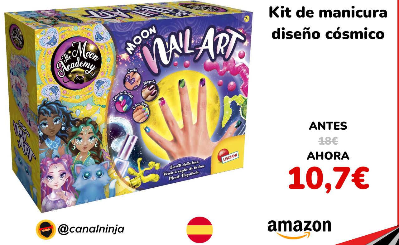 ✨ Muy buen precio para este kit Lisciani The Moon Academy Arte de Uñas Lunar, con esmaltes cambiantes de color inspirados en la Luna, para niños desde 7 años. Incluye herramientas de creación para diseños cósmicos, perfecto como regalo. Vendido y enviado por Amazon.