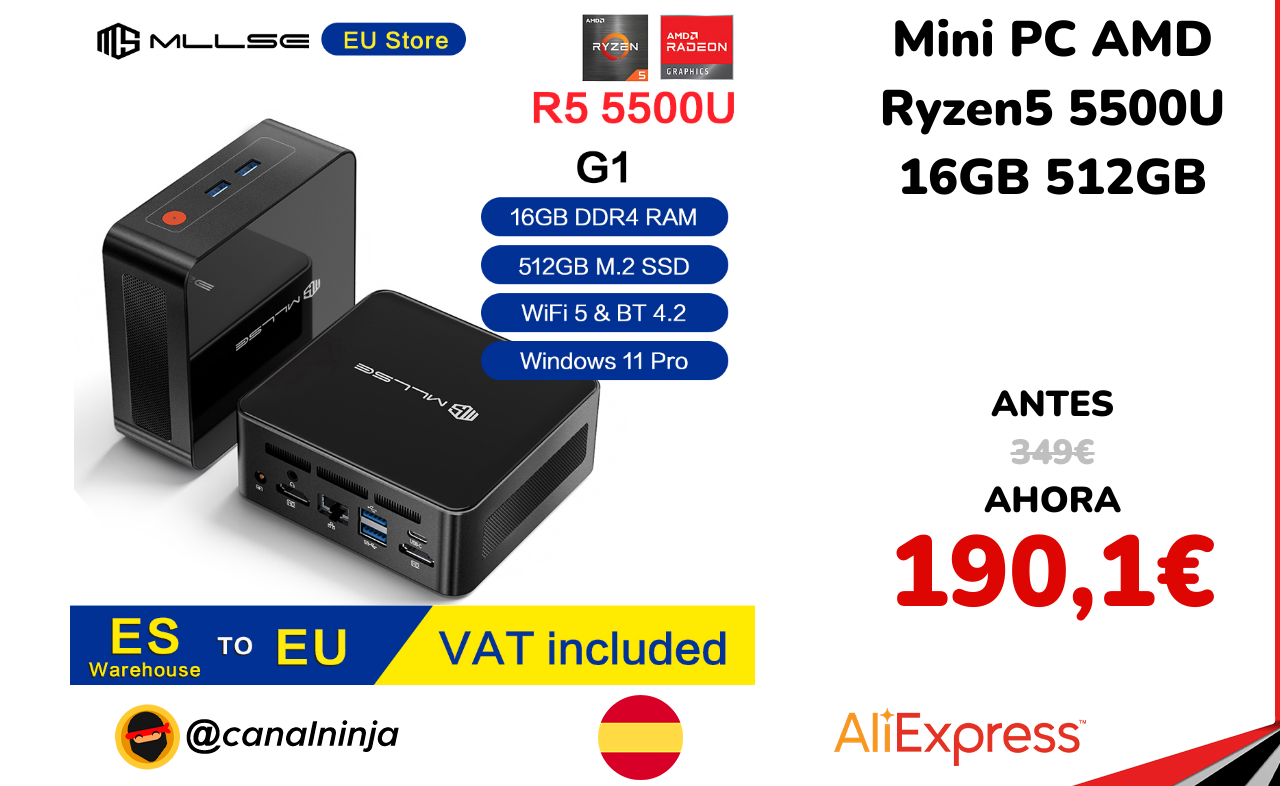 🔹 Mini PC AMD Ryzen5 5500U 16GB 512GB solo 190,1€ ❗️⚔️️ (PVP: 349€)
