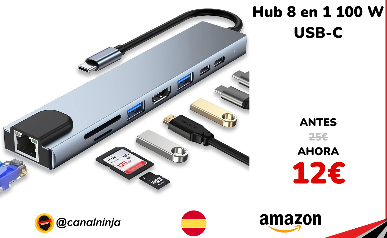 🔹 Hub 8 en 1 100 W USB-C solo 12€ ❗️⚔️️ (PVP: 25€)