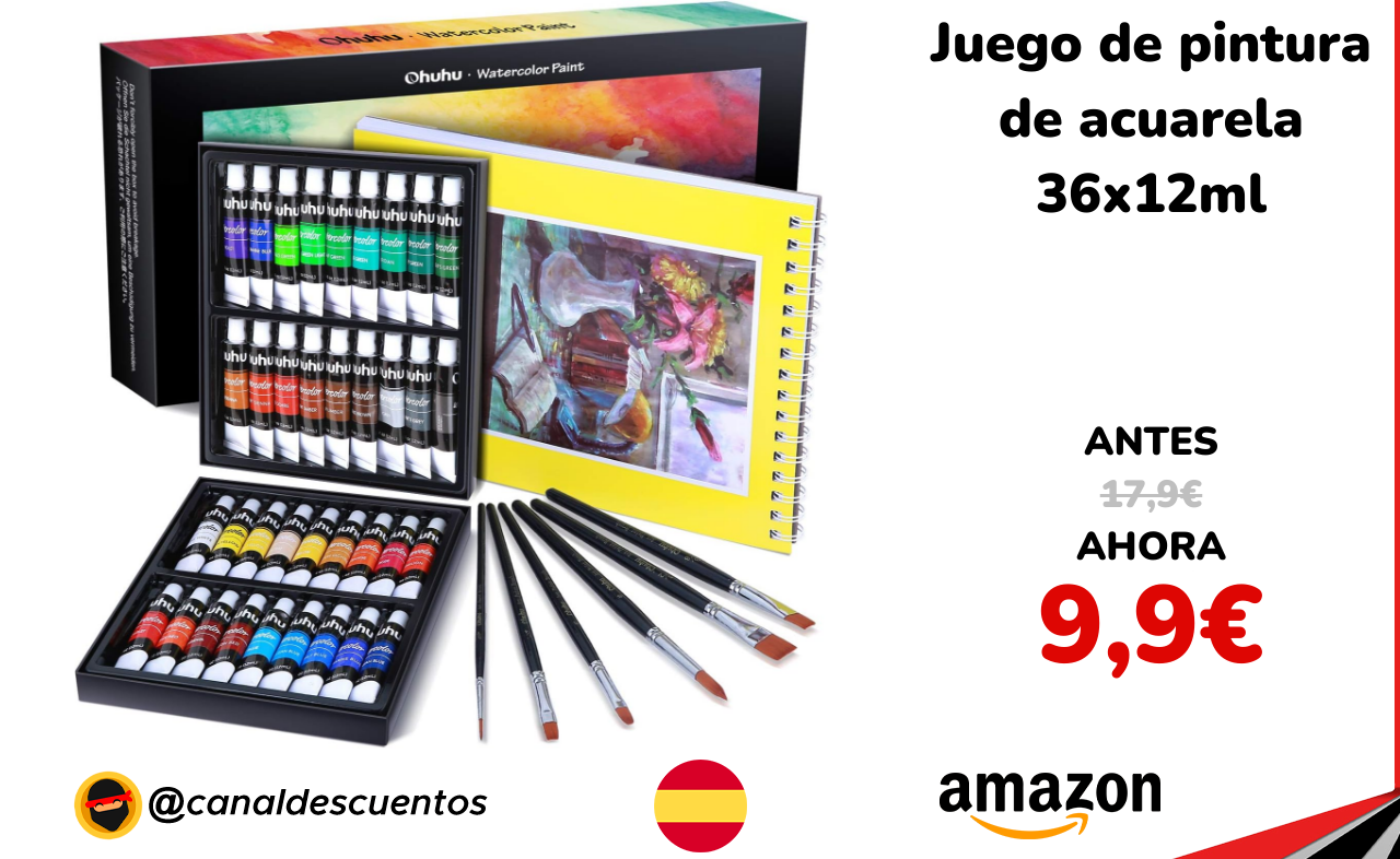 🔹 Juego de pintura de acuarela 36x12ml solo 9,9€ ❗️⚔️ (PVP: 17,9€)
