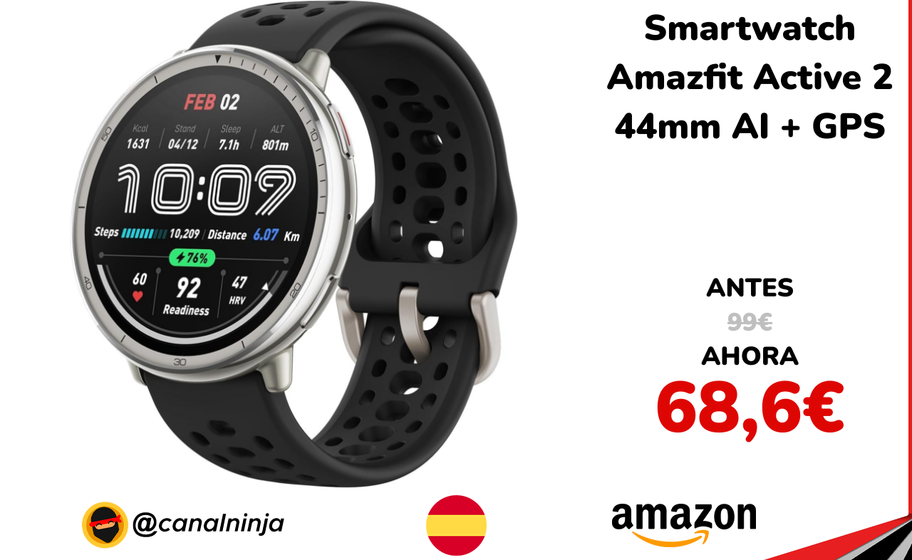 🔹 Smartwatch Amazfit Active 2 44mm AI + GPS solo 68,6€ ❗️⚔️️ (PVP: 99€)