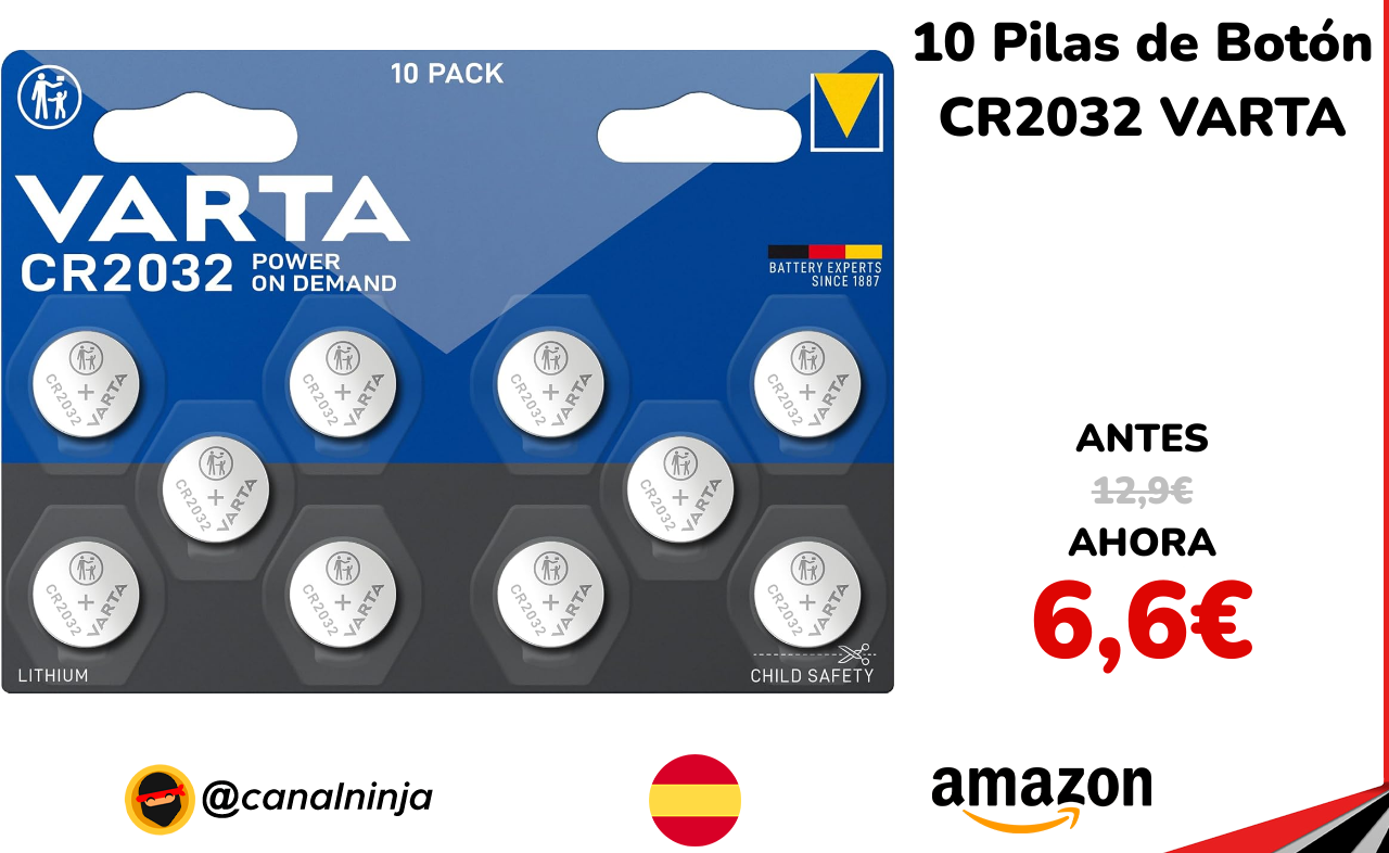 🔹 10 Pilas de Botón CR2032 VARTA solo 6,6€ ❗️⚔️️ (PVP: 12,9€)