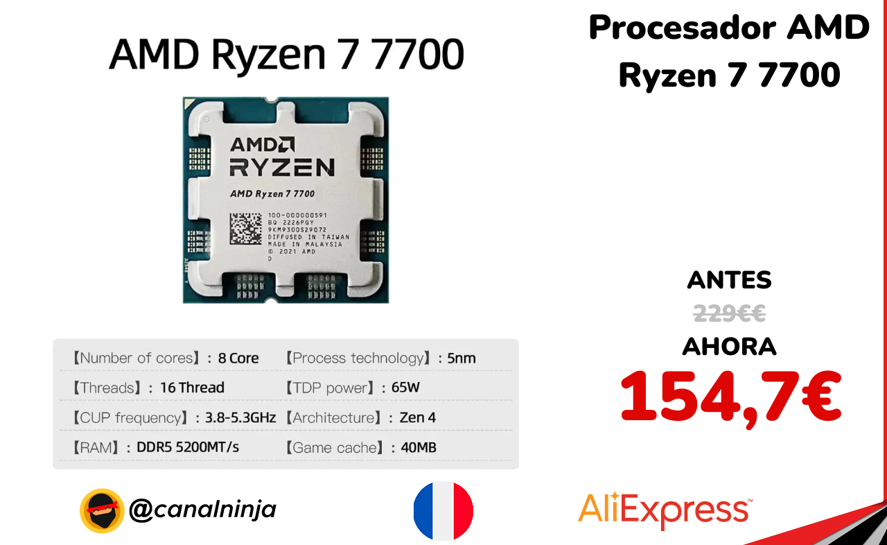 🔹 Procesador AMD Ryzen 7 7700 solo 154,7€ ❗️⚔️️ (PVP: 229€€)