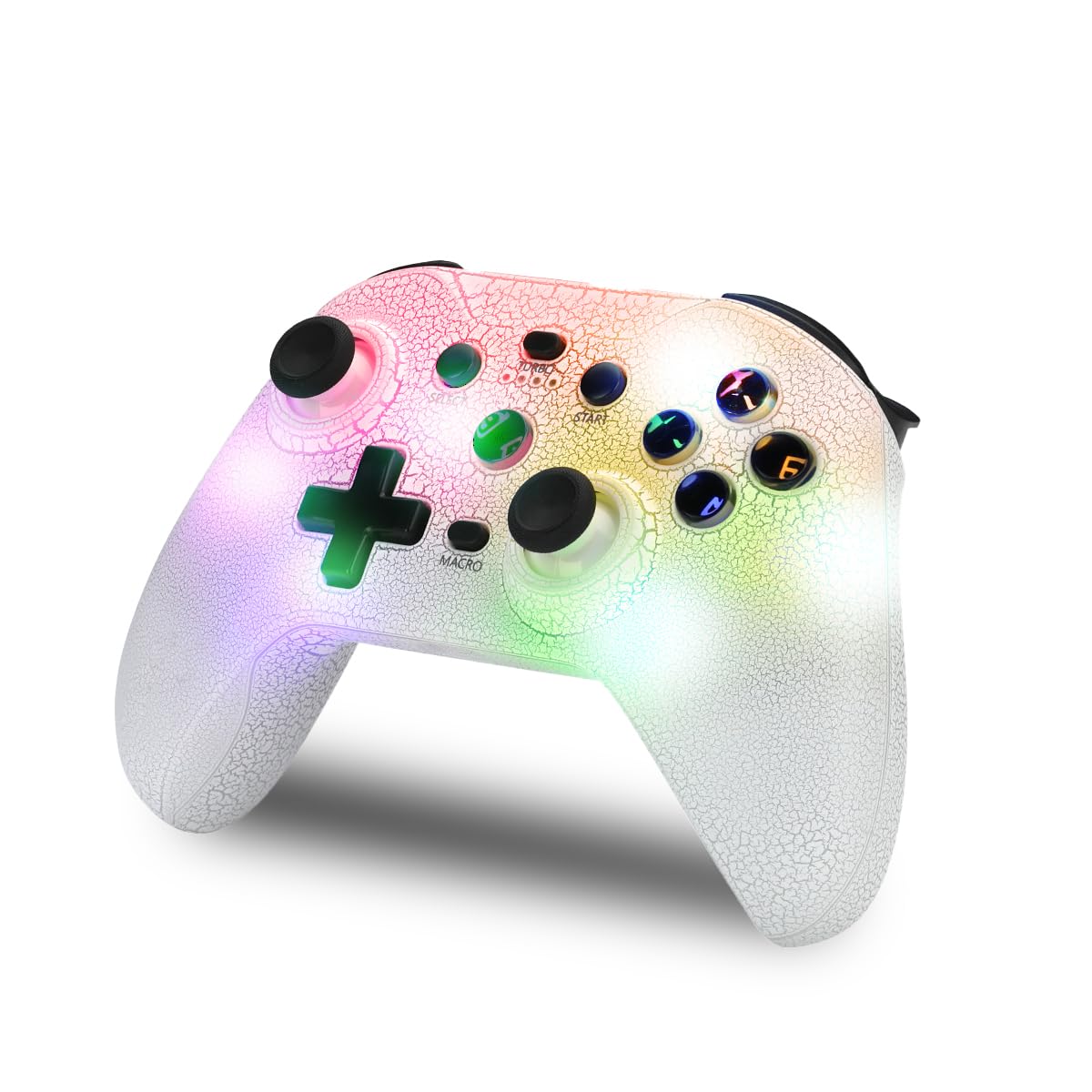 ✴️NK Mando Switch Inalámbrico - LED RGB Ajustable, Switch/PC/Android/iOS, Función Turbo, Ajustes Macro, Bluetooth, 6 ejes, 4 Modos de Vibración - Color Blanco (Incluye Soporte Smartphone) #Publicidad