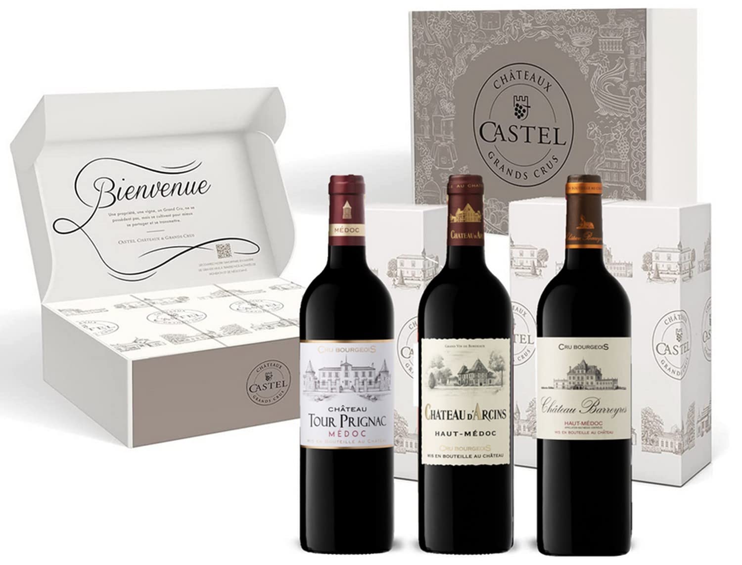 ✴️Estuche - Vino Tinto - Coffret Crus Bourgeois Châteaux Castel: Château Barreyres - Château d'Arcins - Château Tour Prignac - 3 x 75 cl #Publicidad