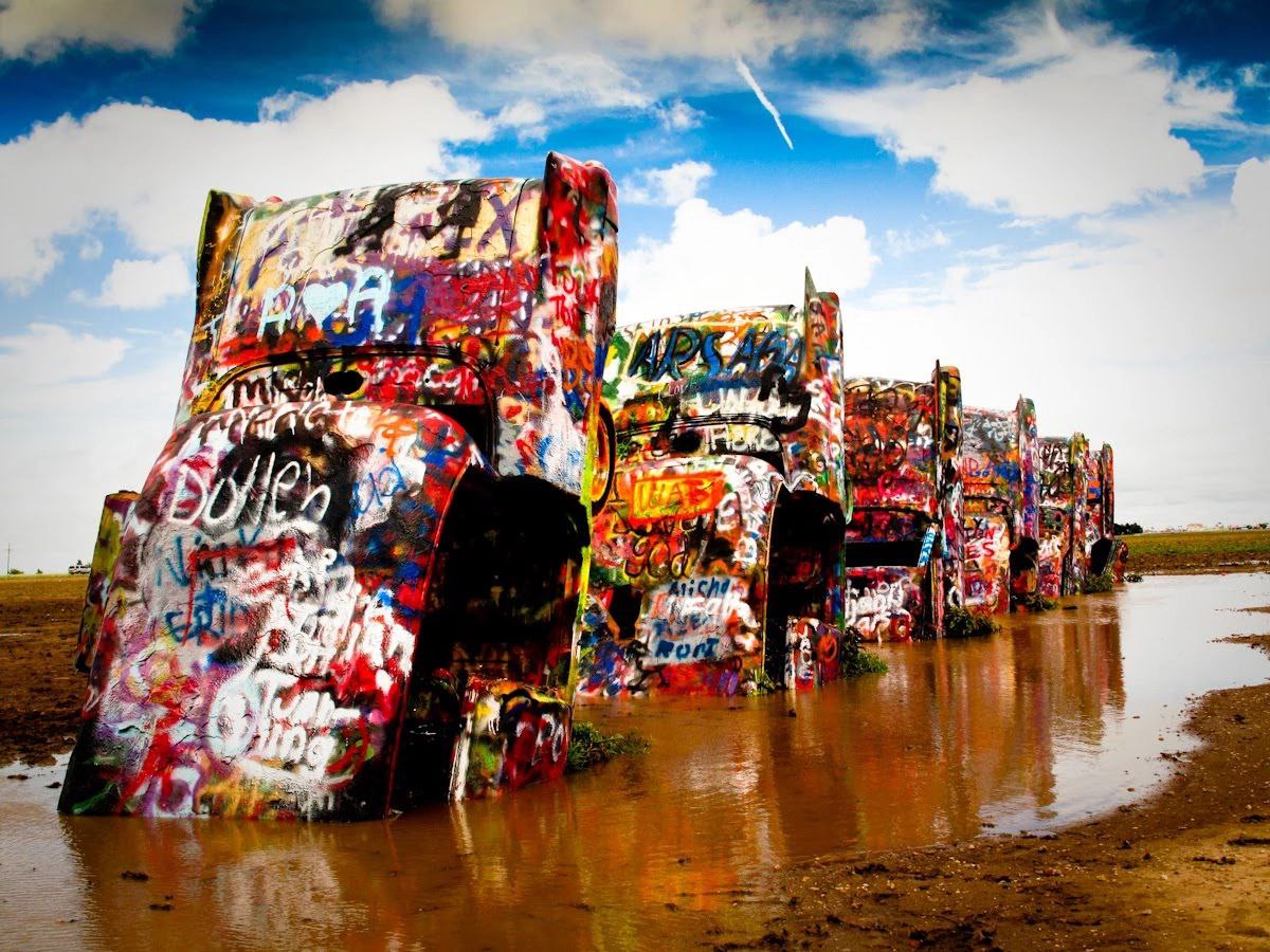 Знаменитое ранчо Кадиллаков, Амарилло, штат Техас, США.