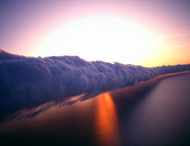 Утренняя глория – редкое метеорологическое явление, которое формируется на границе наступающего холодного фронта. Облако длиной до 1000 км вращается вокруг продольной оси. Скорость его перекатывания может достигать 60 км/ч.
