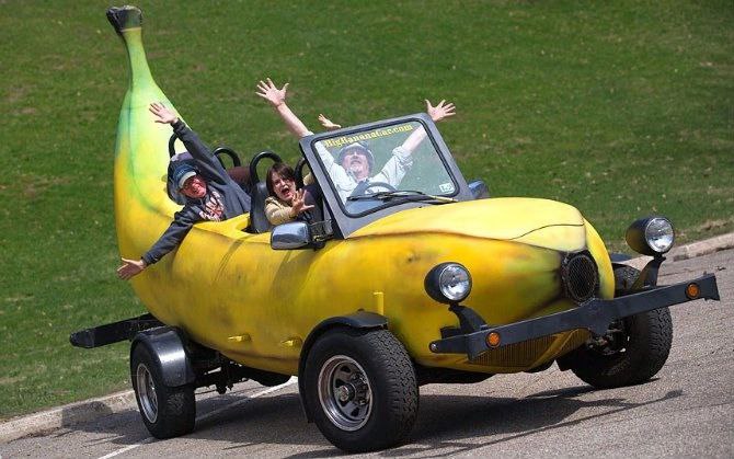 54-летний Стив Брейтуэйт демонстрирует свой уникальный самодельный бананомобиль, на создание которого у уроженца Вудстока ушло два года и 5 тысяч фунтов стерлингов.