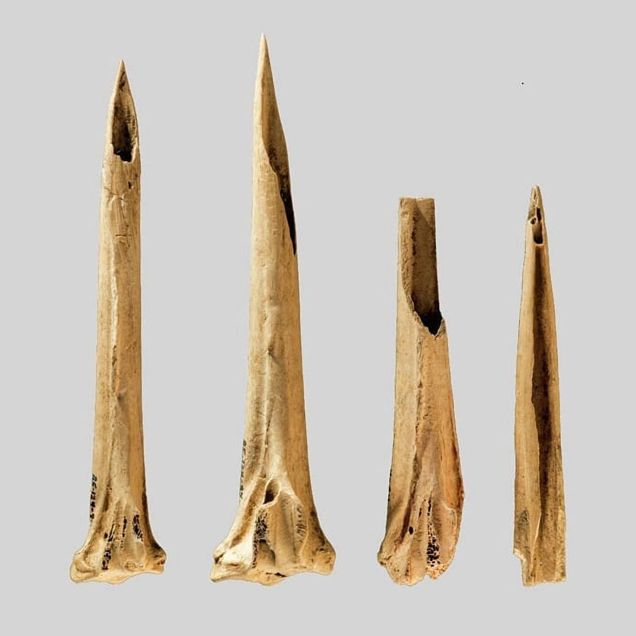 Инструменты сделаны из костей индейки и датируются 3500 годом до н.э. Характерные повреждения на кончиках двух костей и остатки пигмента позволяют археологам предположить, что коренные американцы использовали их как иглы для татуировок.