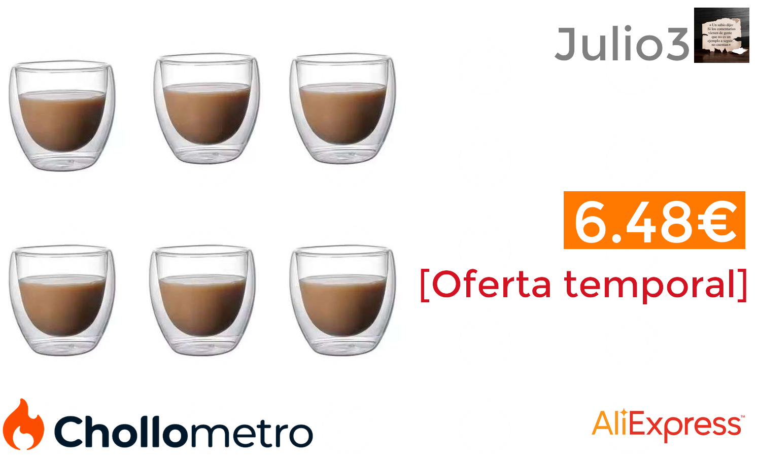 🔹Set 6 tazas cristal doble pared solo 6.48€❗️🔥
