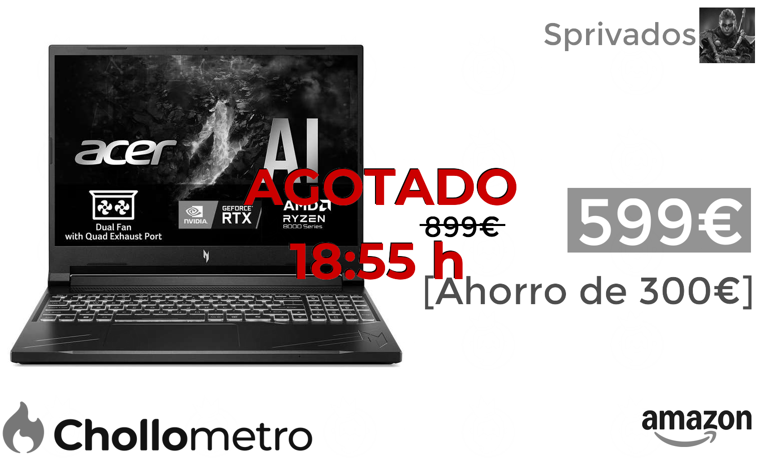 🔹Acer Nitro V 16 Ryzen 7, RTX 4060, 16GB RAM, 1TB SSD, 165Hz solo 599€❗️🔥 (PVP: +899€)