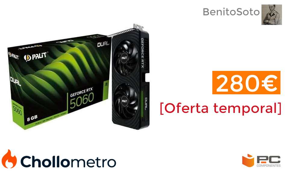 🔹Tarjeta gráfica Palit RTX 5060 Dual 8GB solo 280.9€❗️🔥