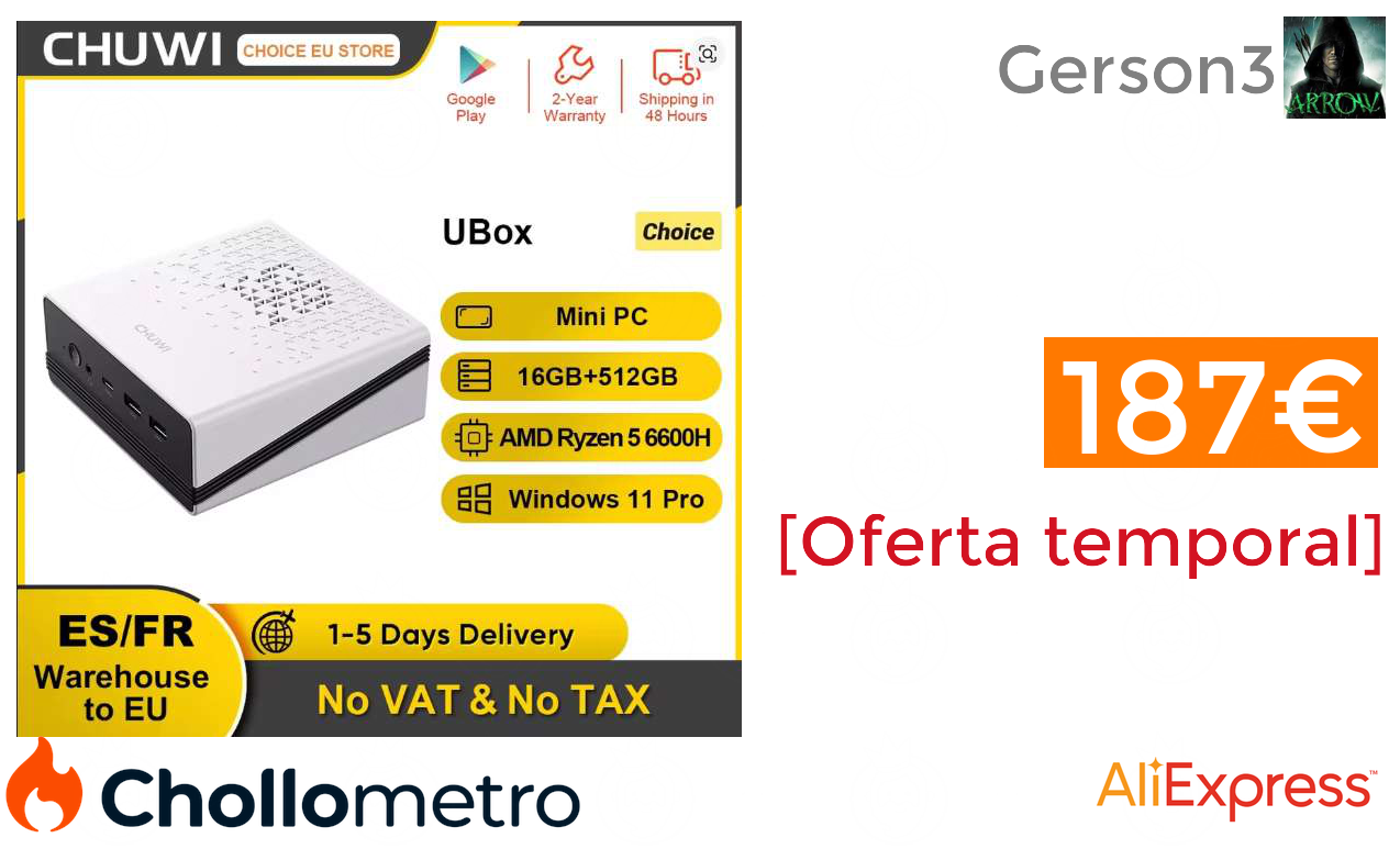 🔹Mini PC Chuwi Ryzen 5 16/512 GB Windows 11 solo 187.43€❗️🔥