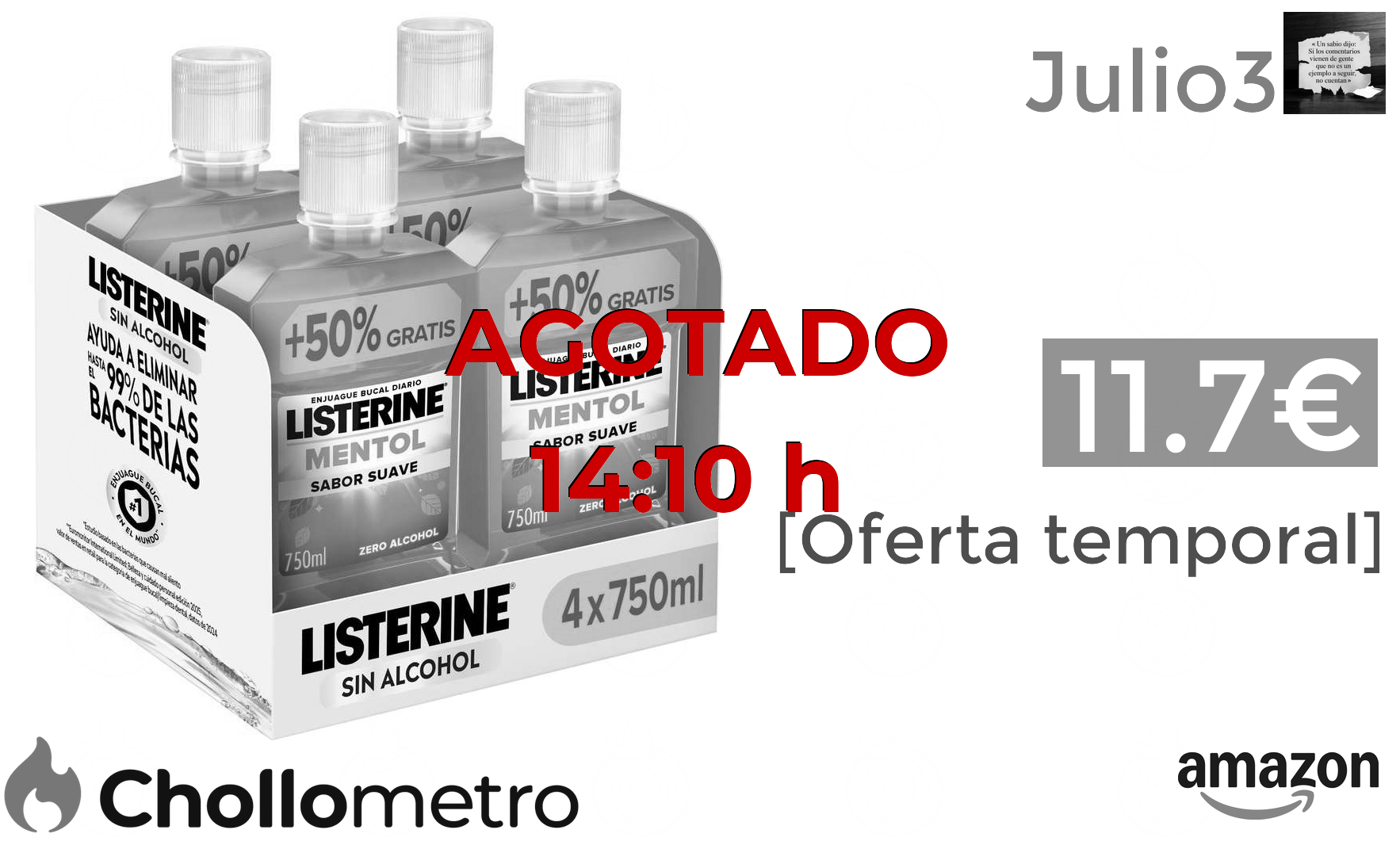 🔹Listerine Mentol Sabor Suave (4x750 ml), enjuague bucal con flúor, colutorio encías con 24 h de protección y 0% alcohol (con CR) 11.7€ ❗️🔥