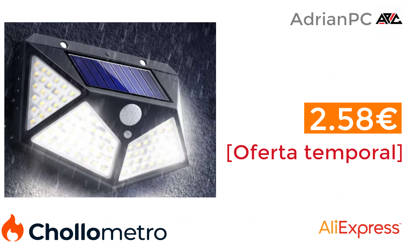 🔹Luz de seguridad con Sensor de movimiento Solar de 100 LED, foco PIR impermeable para exteriores, decoración de jardín y patio 2.58€ ❗️🔥