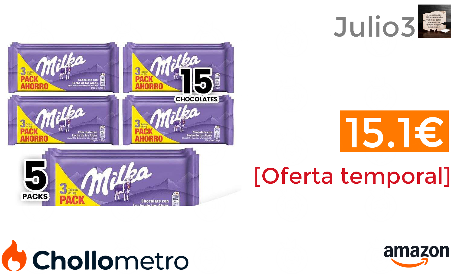 🔹Milka Tableta de Chocolate con Leche de los Alpes Pack Ahorro 3 x 100g (Paquete de 5) (con cr) 15.1€ ❗️🔥