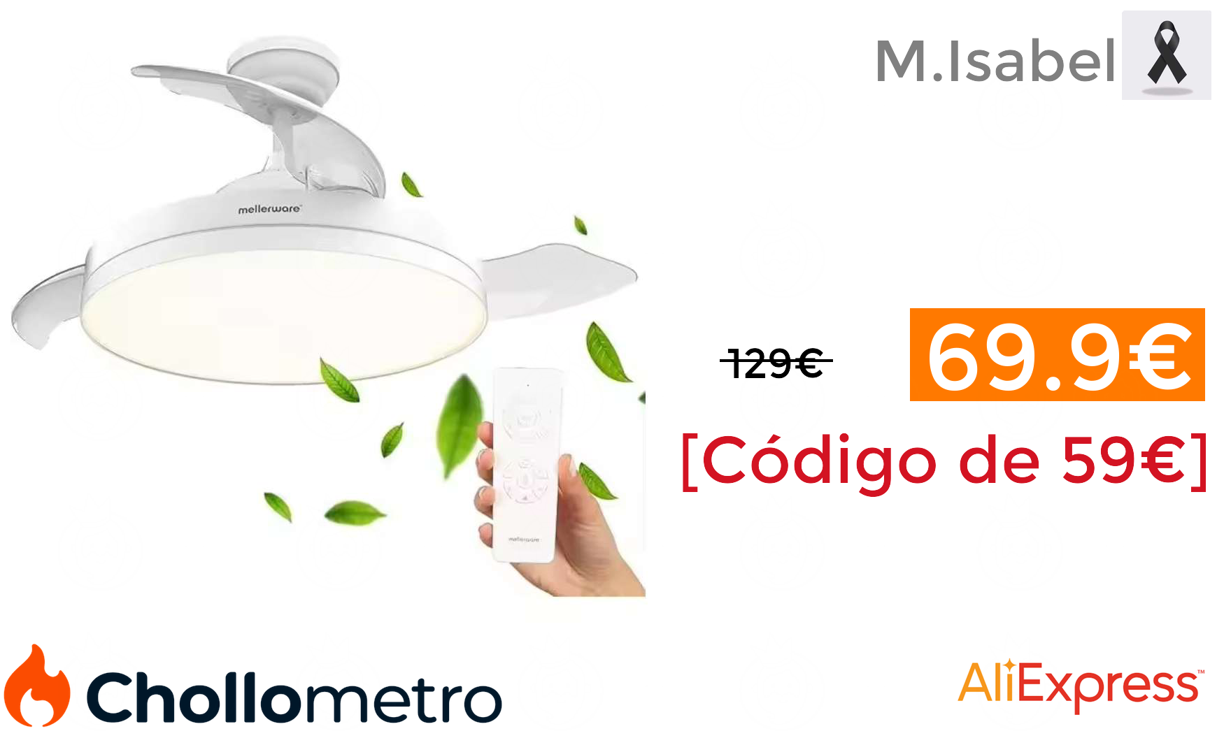 🔹Mellerware - Ventilador de Techo Retráctil Brizy Foldable 40W 6 Velocidades 3 Aspas Motor DC Temporizador Función Verano Invierno Luz LED 69.99€ (PVP: 129.99€) ❗️🔥