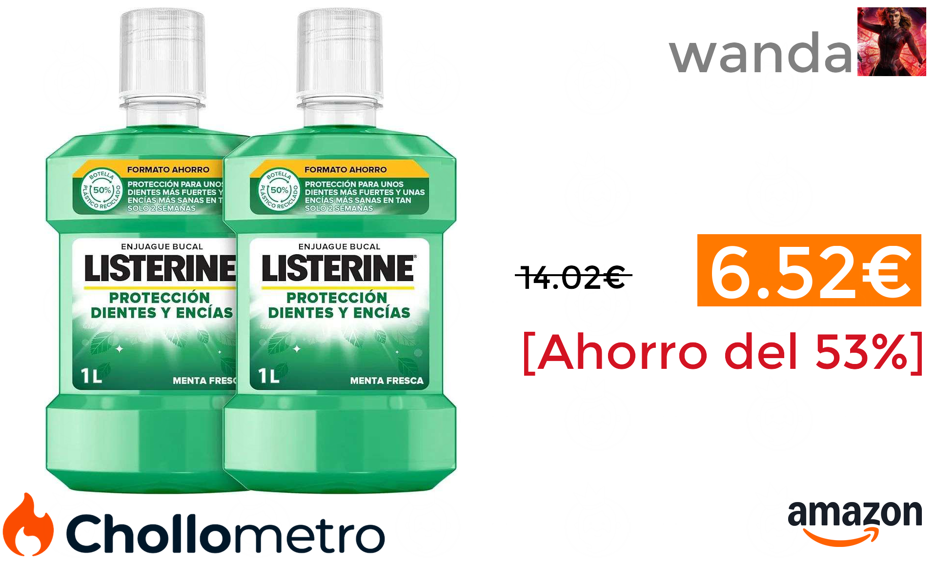 🔹Listerine Protección Dientes y Encías (pack de 2 x 1L), enjuague bucal con flúor, colutorio bucal con 24 horas de protección 6.52€ (PVP: 14.02€) ❗️🔥