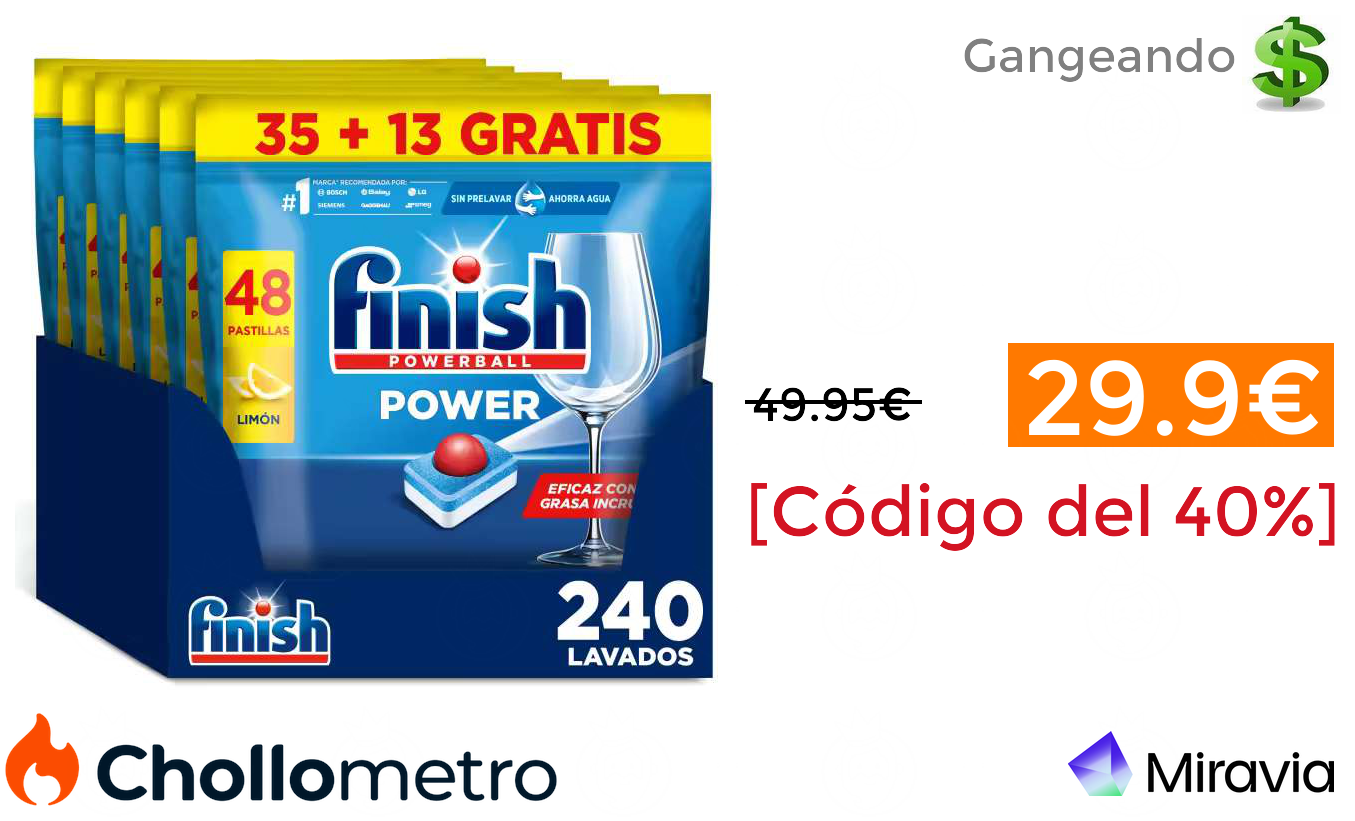🔹Finish Powerball Power All in 1 240 Pastillas para Lavavajillas, Formato 5x48, Aroma Limón, Limpieza y Brillo Diario, Alto Poder de Limpieza 29.95€ (PVP: 49.95€) ❗️🔥