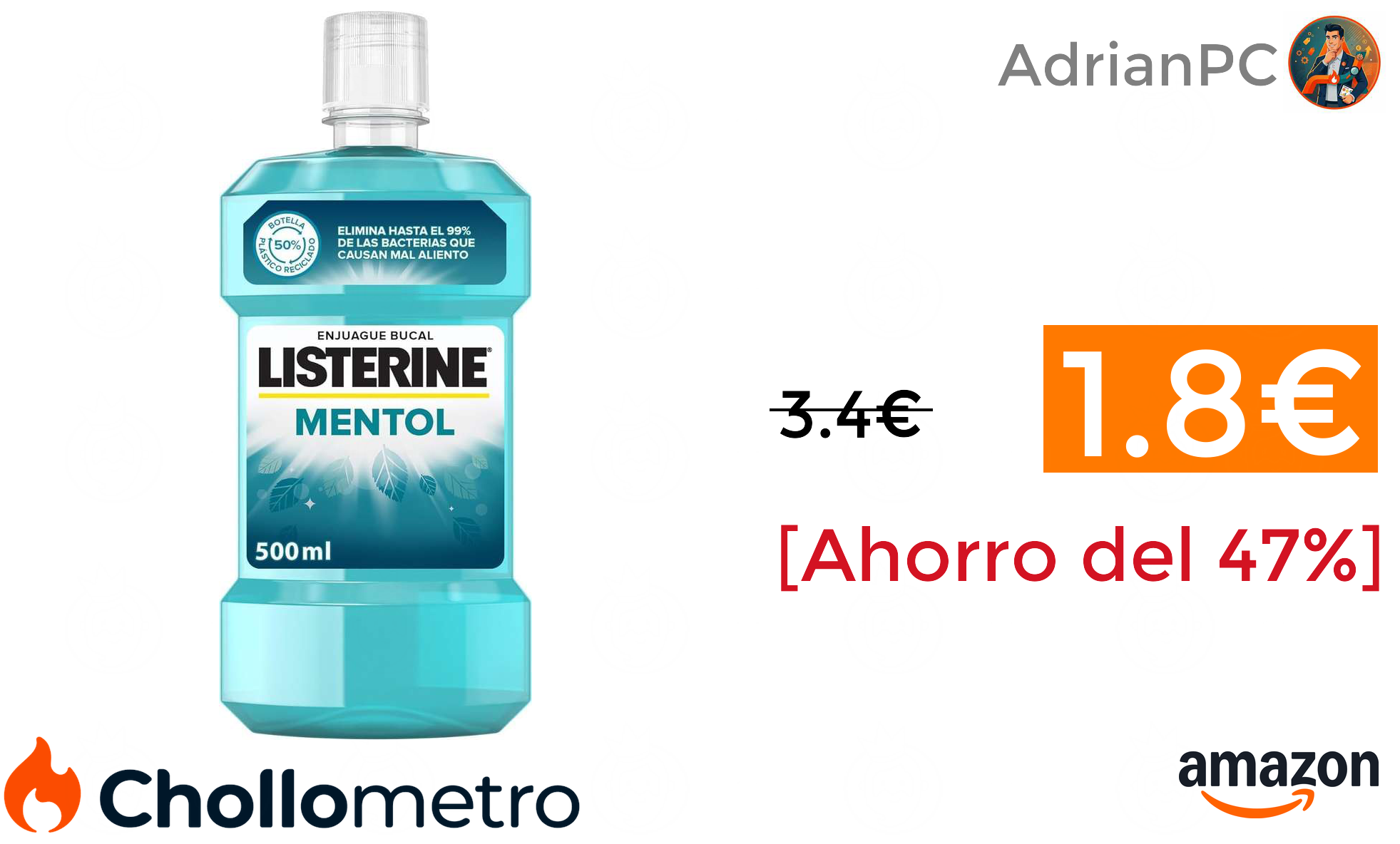 🔹Listerine Mentol (1 x 500 ml), enjuague bucal con flúor, colutorio bucal con 24 horas de protección (opción pack de 2) 1.8€ (PVP: 3.4€) ❗️🔥