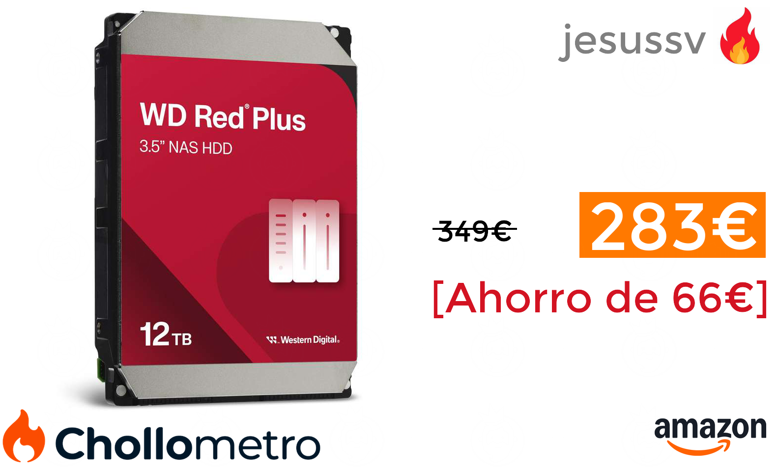 🔹WD Red Plus Versión 2025 12TB NAS Disco Duro Interno 3,5" - 7200 RPM, SATA 6Gb/s, CMR, 512MB Caché 283.99€ (PVP: 349.99€) ❗️🔥