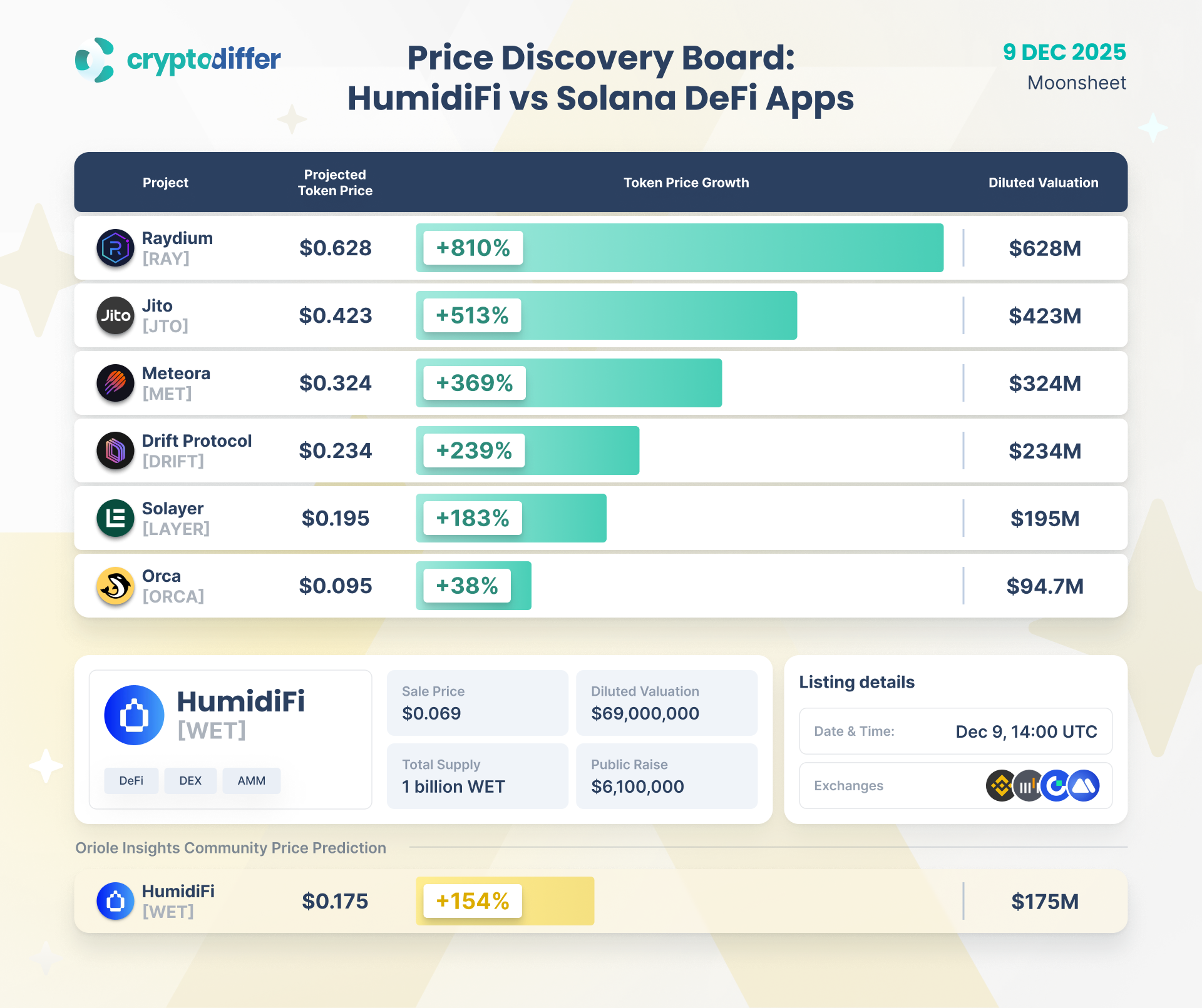 With a 1B total supply and a $69M valuation, this chart benchmarks potential market scenarios based on comparable Solana-based DeFi Apps like Meteora or Jito. Launch is scheduled for Dec 9, 14:00 UTC.