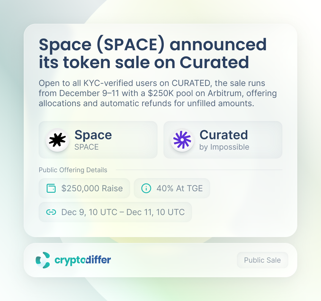 Open to all KYC-verified users on Curated, the sale runs from December 9–11 with a $250K pool on Arbitrum, offering transparent allocations and automatic refunds for unfilled amounts.