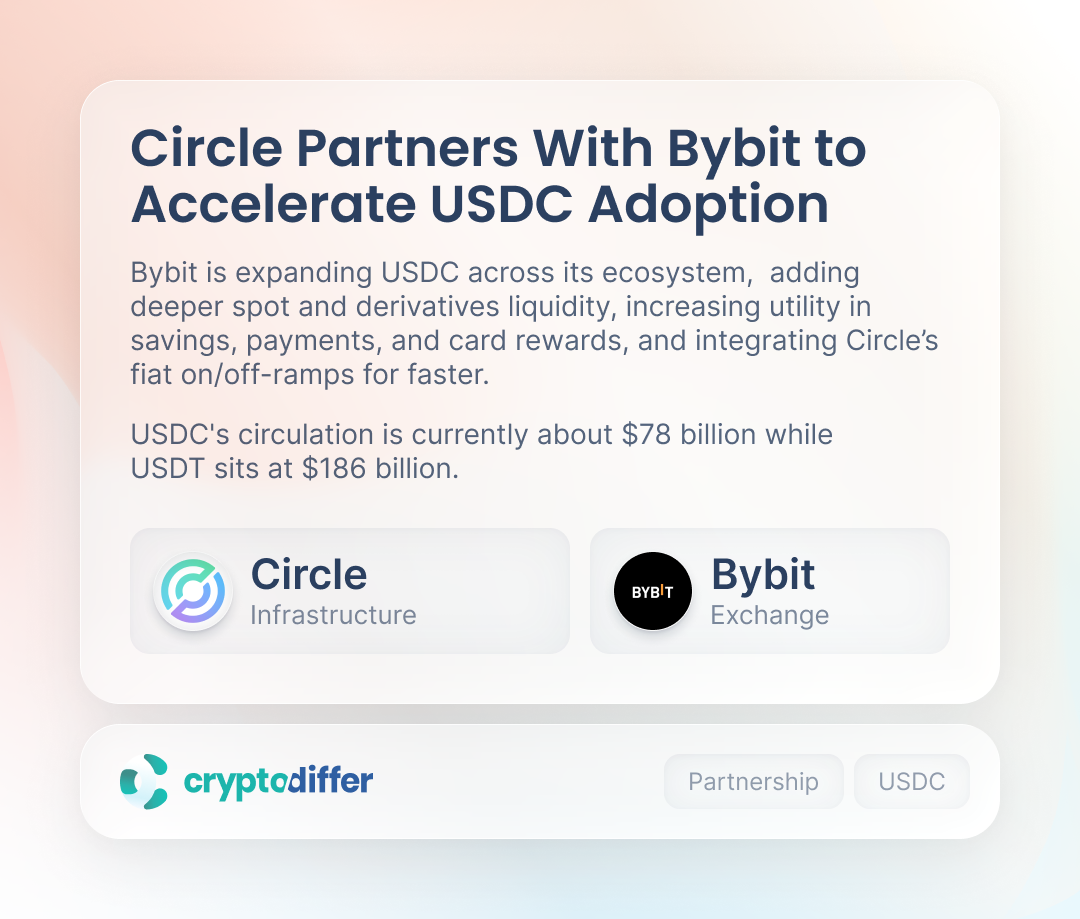 Bybit is expanding USDC across its ecosystem, adding deeper spot and derivatives liquidity, increasing utility in savings, payments, and card rewards, and integrating Circle’s fiat on/off-ramps for faster.