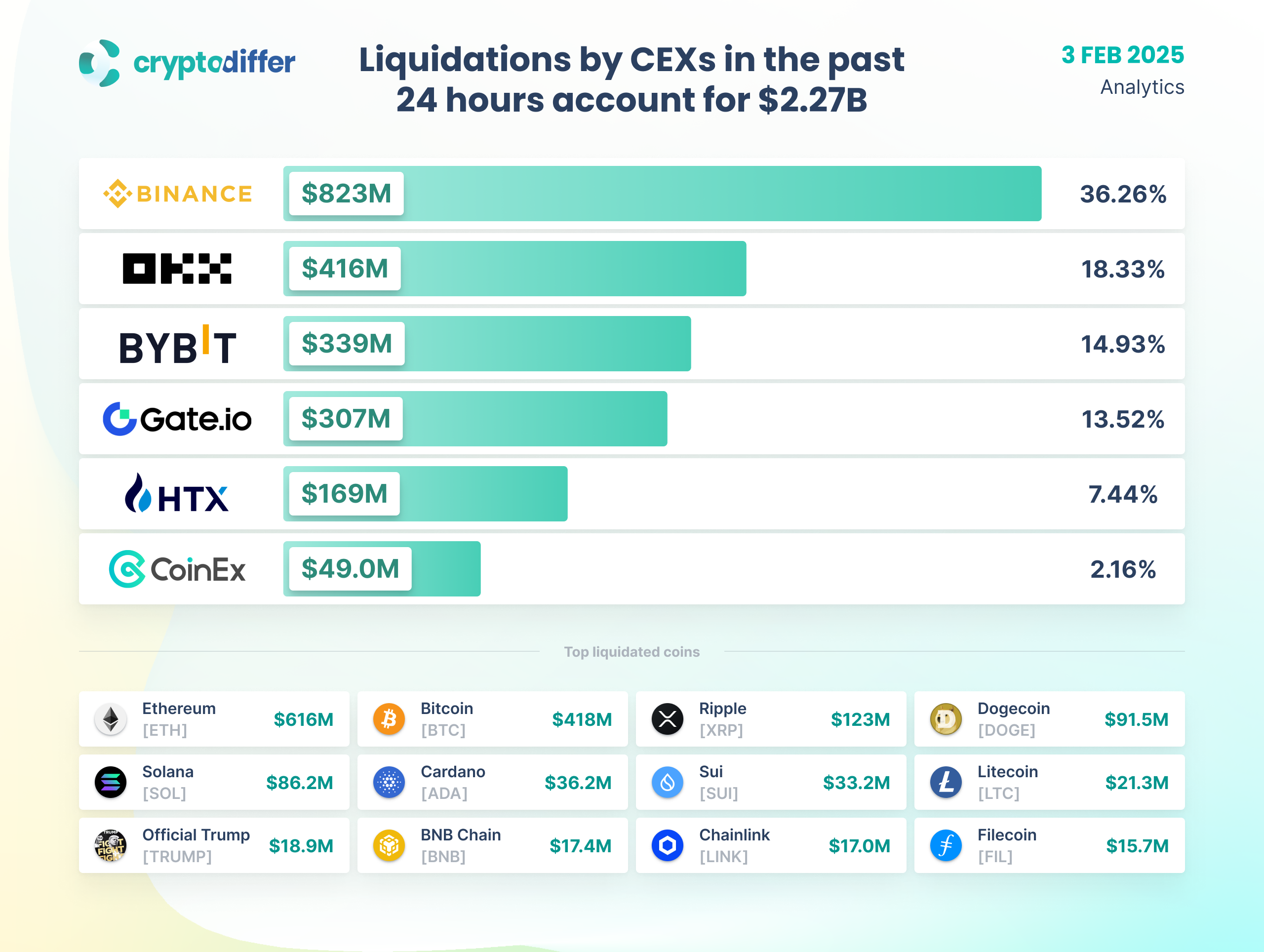 Liquidations by CEXs in the past 24 hours account for $2.27 billion!