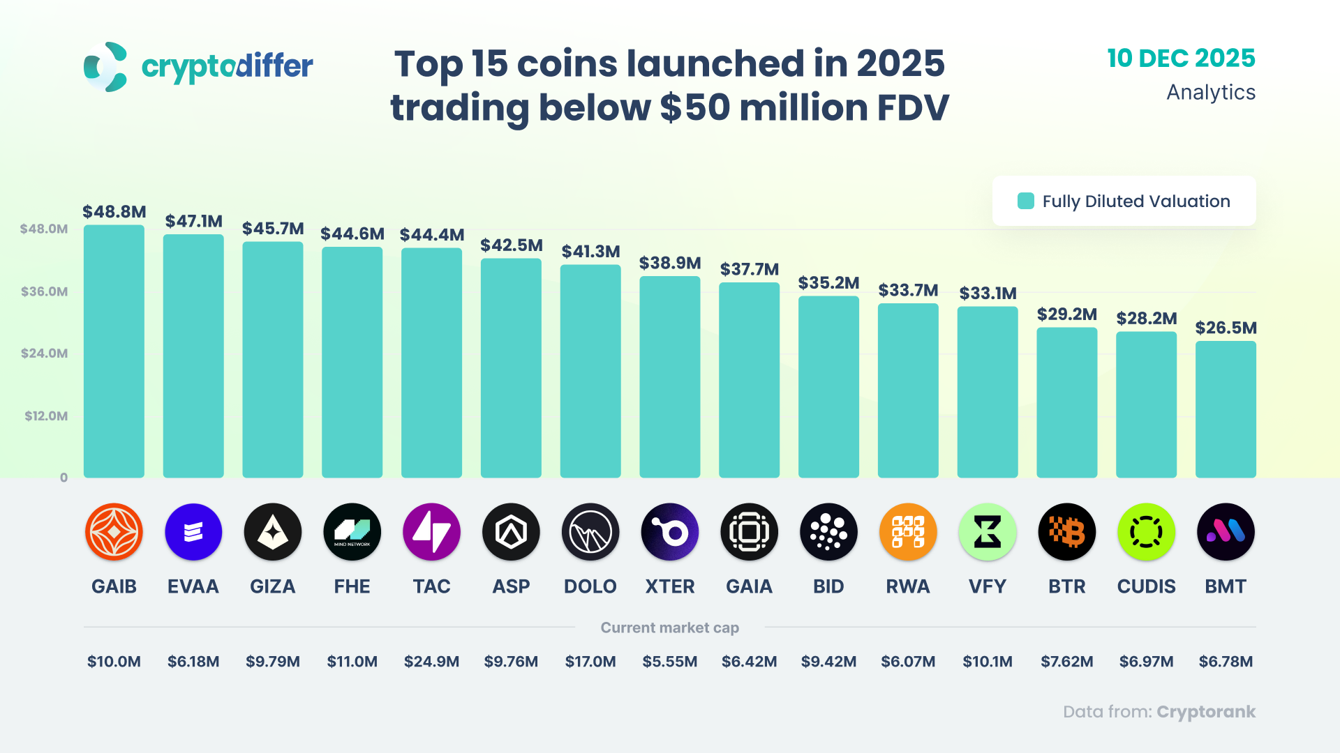 Top 15 coins launched in 2025 trading below $50 million FDV