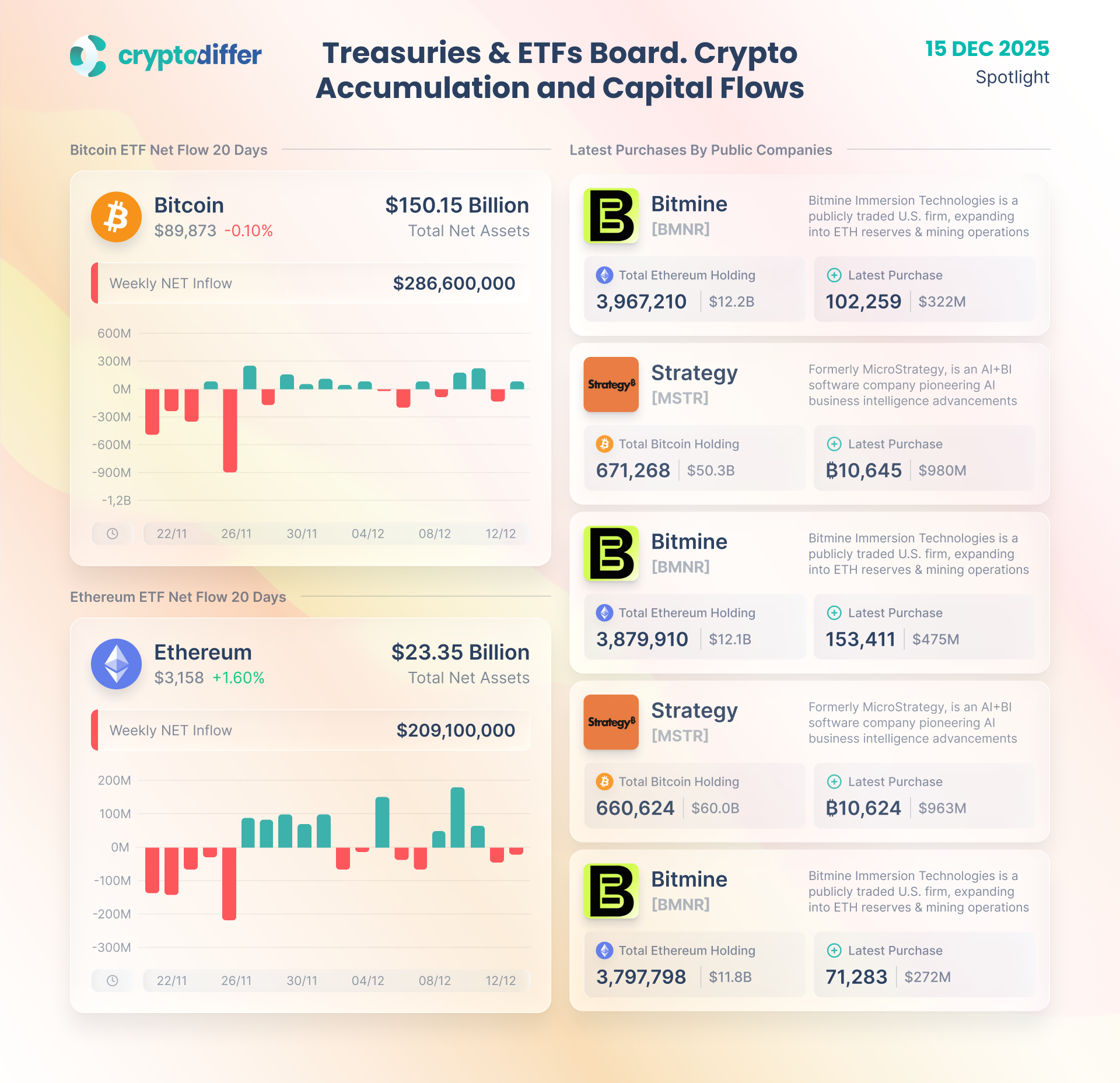 Treasuries & ETFs Board. Crypto Accumulation and Capital Flows