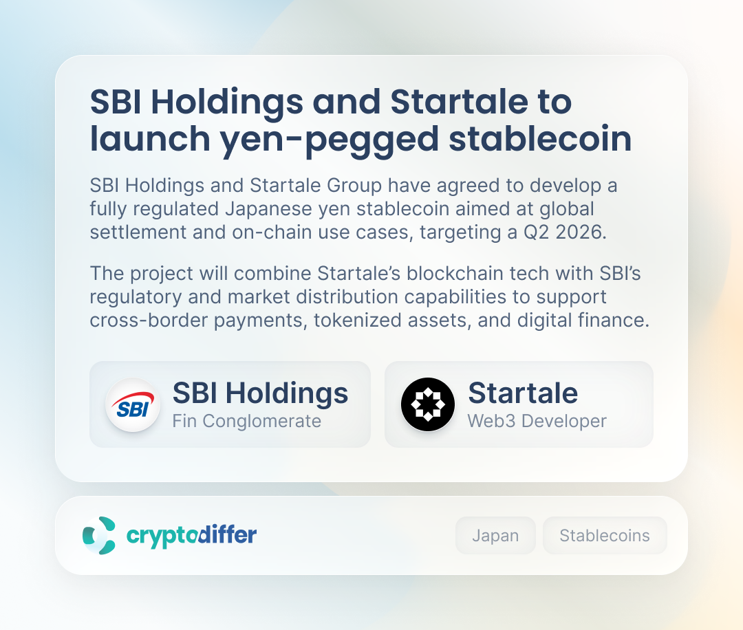 The two companies will leverage SBI's established position as a primary financial institution in Japan and Startale's Web3 experience, including its role in co-developing the Sony-backed Soneium.
