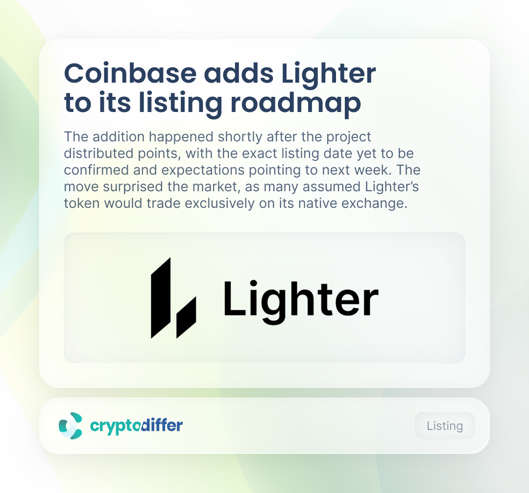 The exact listing date yet to be confirmed and expectations pointing to next week. The move surprised the market, as many assumed Lighter’s token would trade exclusively on its native exchange.