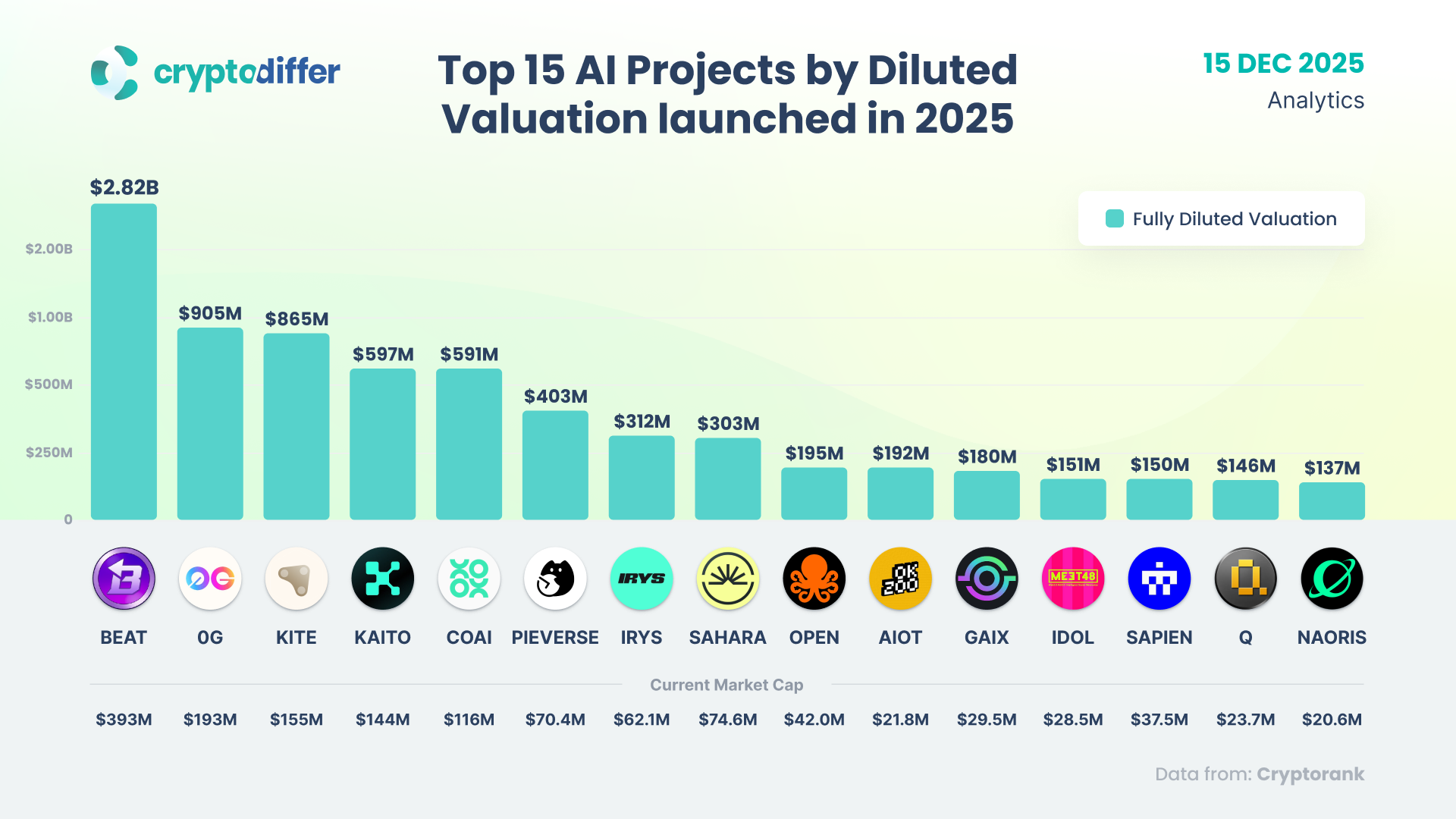 Top 15 AI Projects by Diluted Valuation launched in 2025