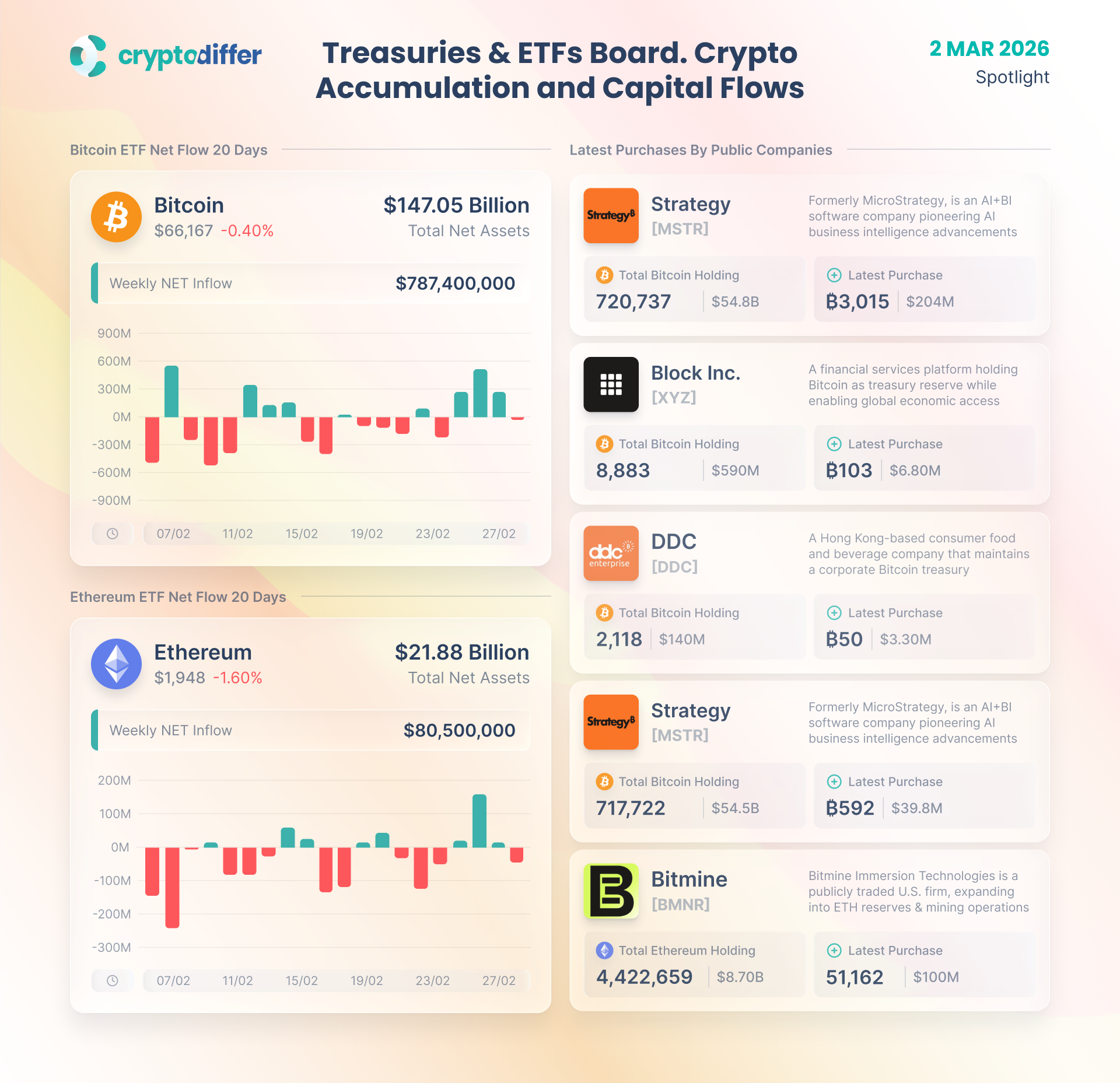 Treasuries & ETFs Board. Crypto Accumulation and Capital Flows
