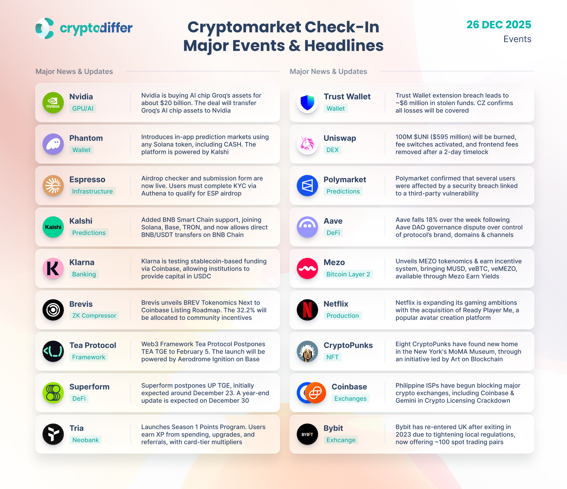As 2025 comes to an end, project activity has slowed, with fewer partnerships, developments, and major announcements. Market volatility has eased over the past few days.