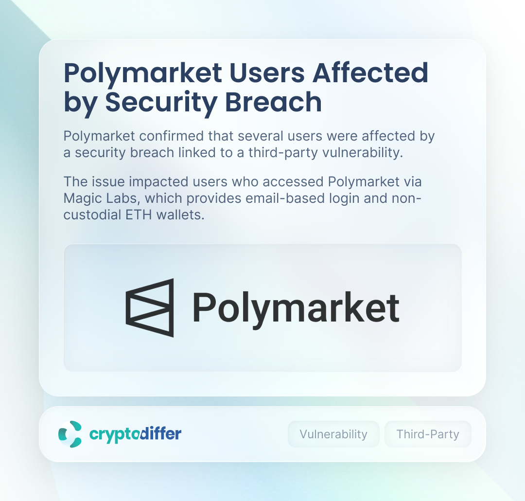 Polymarket confirmed that several users were affected by a security breach linked to a third-party vulnerability. Social media reports earlier this week cited unauthorized logins and drained account balances.