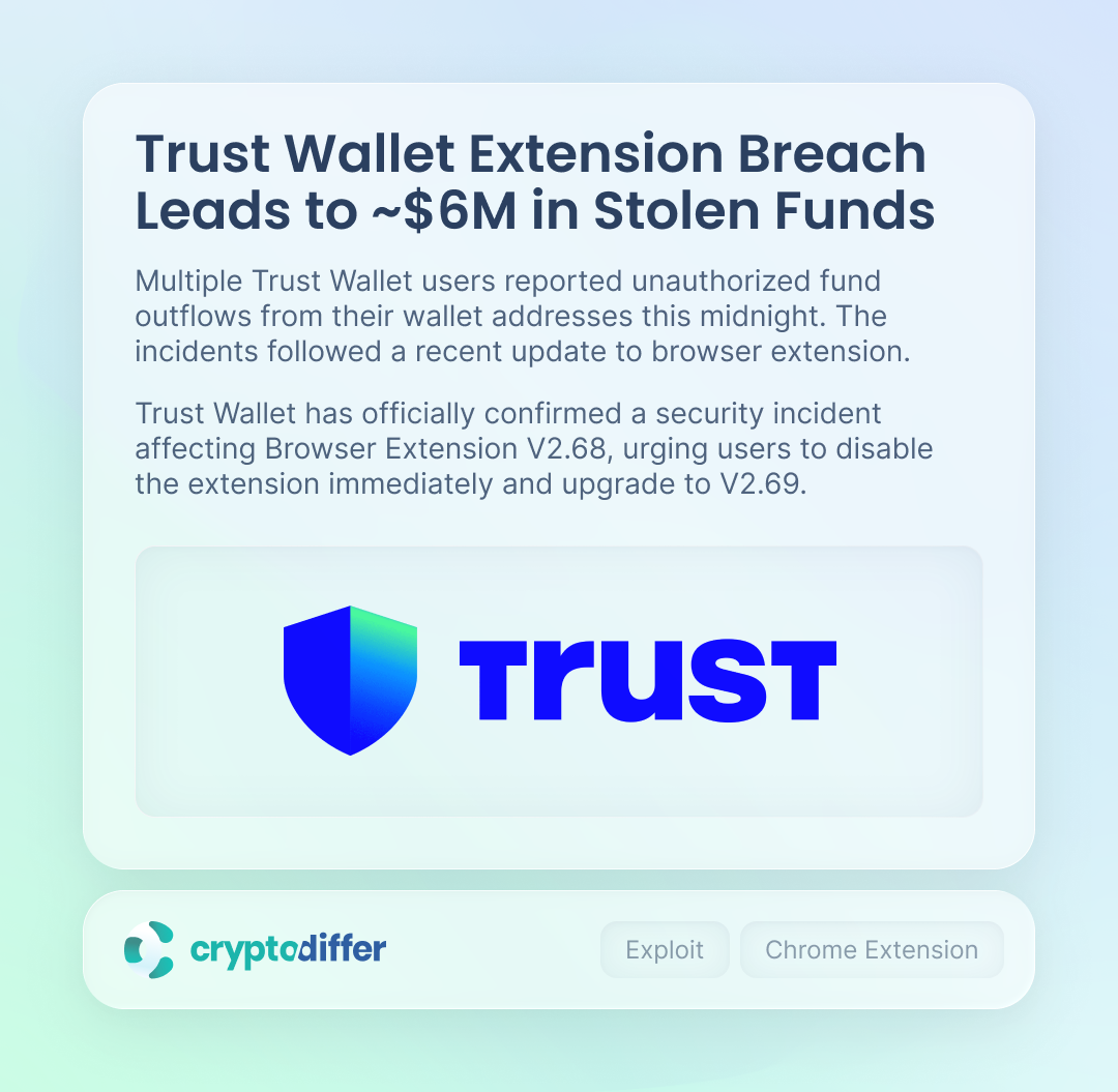 Trust Wallet Extension Breach Leads to ~$6M in Stolen Funds