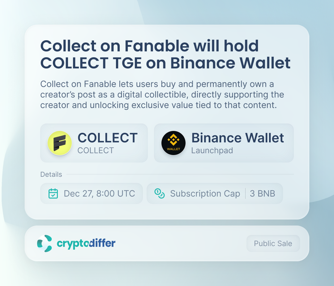 Collect on Fanable (COLLECT) will hold its TGE on Binance Wallet