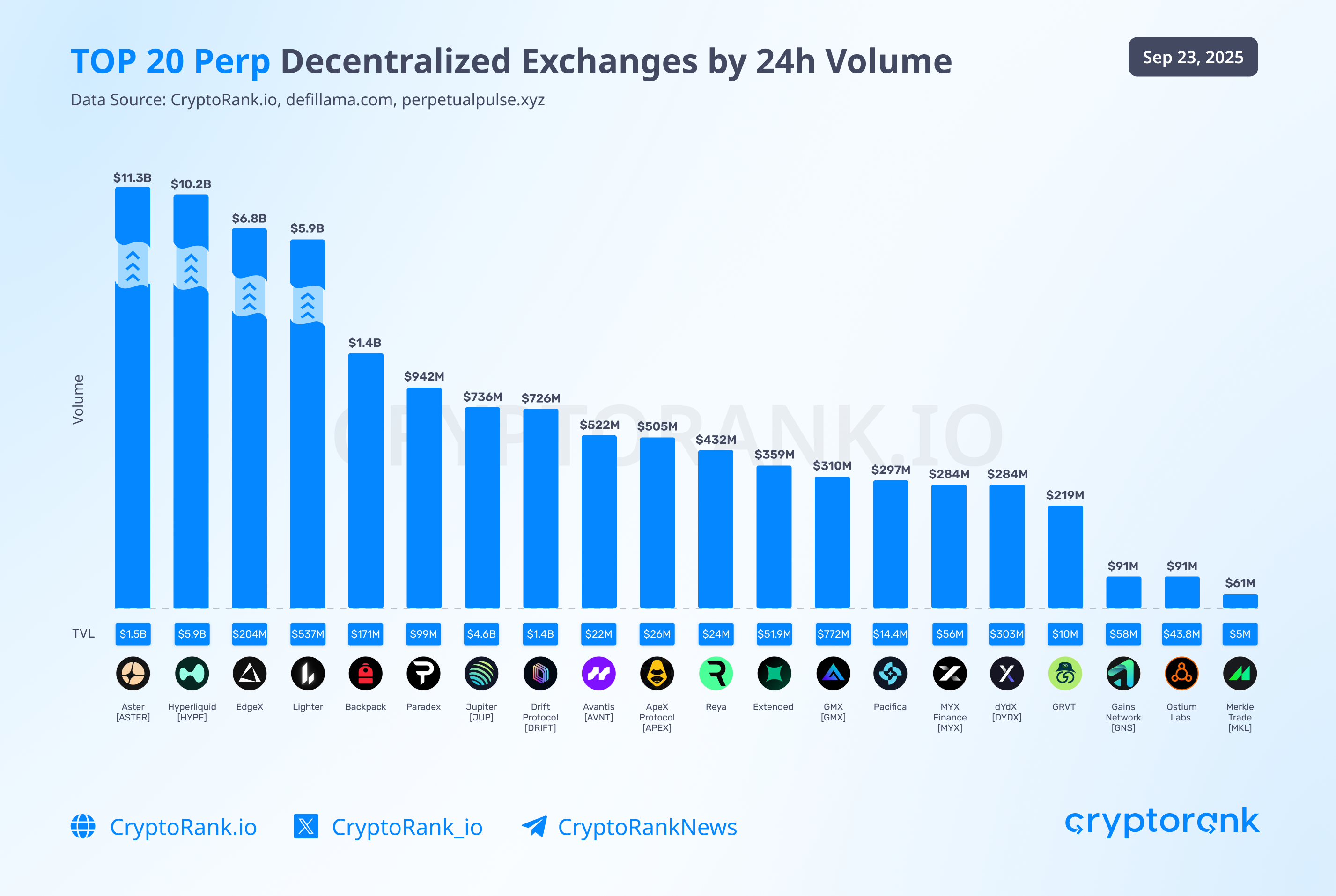 Both Aster and Lighter now surpass HL by 24h volume, while HYPE is down 27% in the last 7 days.