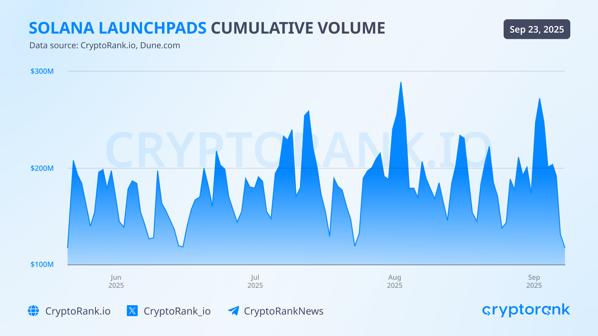 Launchpads saw the lowest combined volume in 4 months, $117M. Active wallets fell below 100K, while daily graduates count fell to just 88.