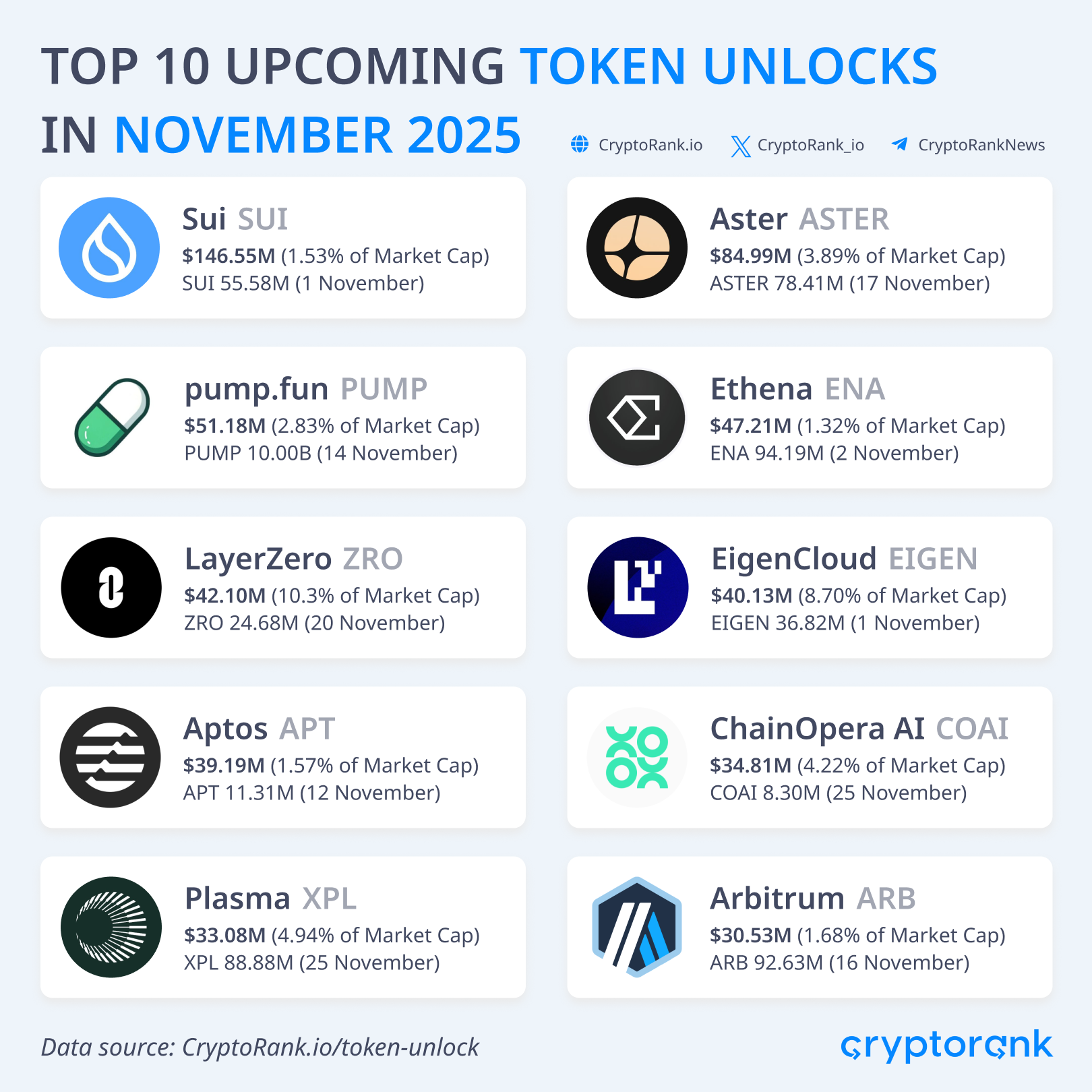$2.1 Billion Worth of Tokens To Be Unlocked in November 🔓