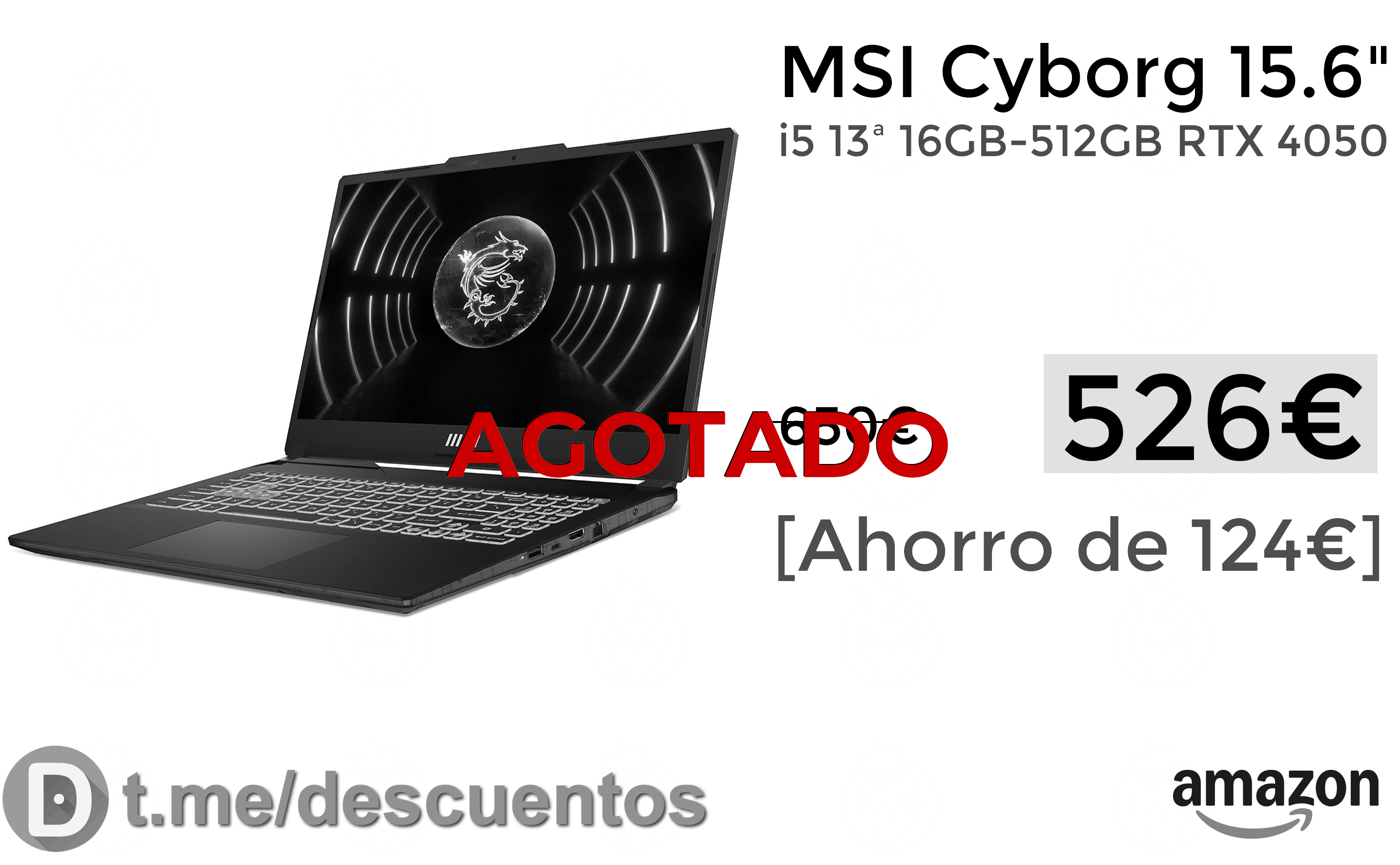 🔹MSI Cyborg 15.6" i5 13ª 16GB-512GB RTX 4050 solo 526€❗️⚡️ (PVP: +650€)